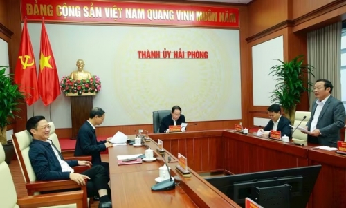 Thường trực Thành ủy Hải Phòng thực hiện quy trình giới thiệu người ứng cử đại biểu HĐND thành phố khóa XVII, nhiệm kỳ 2026 - 2031. Ảnh: Phong Tuyết |