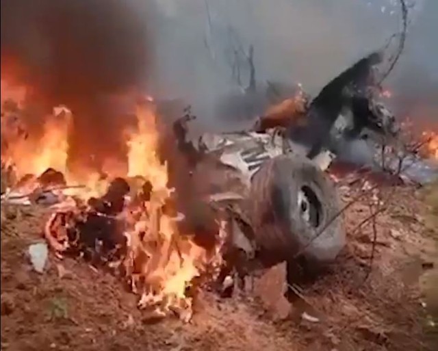 | Chiếc máy bay bốc cháy sau khi rơi xuống đất. |