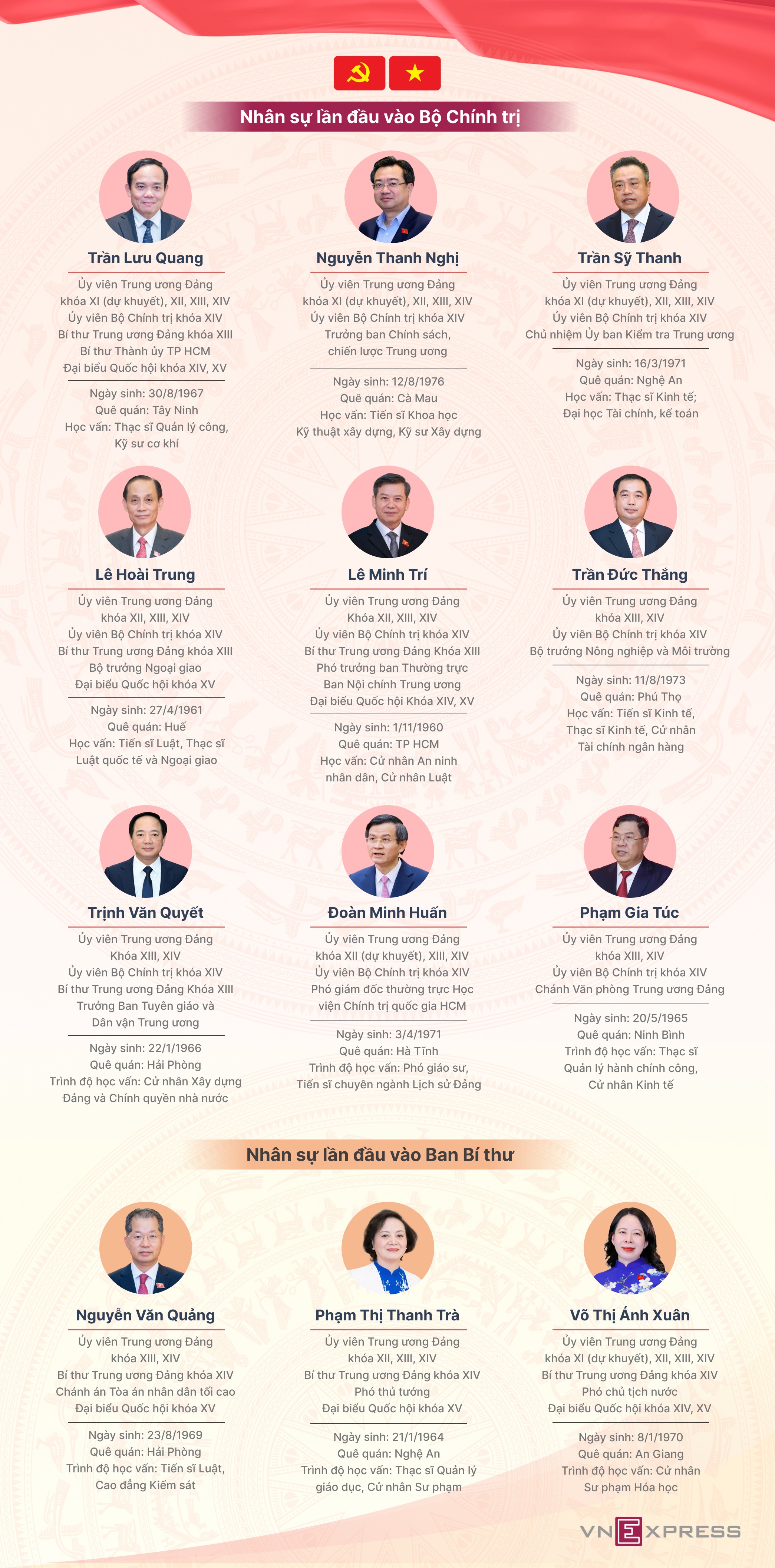 Trung ương khóa XIV vừa bầu Bộ Chính trị gồm 19 Ủy viên, trong đó có 9 người lần đầu tham gia; Ban Bí thư gồm 13 Ủy viên, với 3 người mới được bầu.