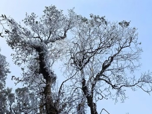Từ tháng 12 đến tháng 2, nhiệt độ ở các đỉnh núi cao có thể xuống dưới 0°C, biến Tà Xùa thành khung cảnh trắng xóa mê hoặc. Đứng trên các đỉnh núi, du khách vừa săn mây, vừa thưởng thức cảnh băng giá tinh khôi – một trải nghiệm vừa hiếm có, vừa độc đáo giữa núi rừng Tây Bắc. Ảnh Giàng Hạnh Phúc |