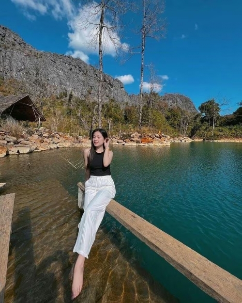 Cách trung tâm Vang Vieng khoảng 7 km, Đầm Blue Lagoon là quần thể đầm xanh trong vắt, nằm giữa núi đồi xanh mướt. Du khách có thể di chuyển bằng xe tuk tuk, xe đạp hoặc phương tiện công cộng để chiêm ngưỡng cảnh sắc tuyệt đẹp. Địa hình độc đáo của Blue Lagoon còn tạo điều kiện cho các trò chơi mạo hiểm như nhảy nhào lộn từ ghế treo, zipline hay đu dây vượt thác. Trước khi đến đầm, du khách còn có thể khám phá quần thể động Poukham kỳ bí giữa sông núi hài hòa. Ảnh Luhanhvietnam |