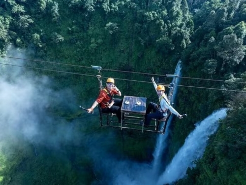 Trên cao nguyên Bolaven, thác Tad Fane cao hàng chục mét đổ xuống hẻm núi hiểm trở, nổi bật giữa rừng cây xanh ngút ngàn. Dòng thác trắng xóa tạo nên khung cảnh hùng vĩ và yên bình, là nơi lý tưởng để rời xa ồn ào thành thị. Du khách có thể ngắm thác từ các đài quan sát hoặc tận hưởng cảnh đẹp từ các resort, quán cà phê hòa mình giữa thiên nhiên. Ảnh Vũ Minh Quân |