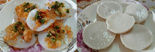 Món bánh chinh phục trái tim bạn ngay từ lần thưởng thức đầu tiên. Thành phần chính của bánh gồm bột gạo xay mịn, dằn khô, cùng ít bột mì tinh và nhân là tôm tươi băm nhuyễn xào chín. Trộn hai thứ bột ấy lại với nhau cùng với nước cho có dộ đặc vừa phải. Sau đó, bắc nồi lên bếp, nấu cho nước trong nồi thật sôi, đặt xửng vào, xếp từng chén lên xửng, thoa một lớp dầu dừa lên chén, chờ chén thật nóng, múc bột chế vào khoảng non nửa chén. Đậy kín nắp lại, hơi nước sôi sẽ làm cho bánh chín, sau đó để tôm xào lên khoảng 1 phút và nhắc xuống.