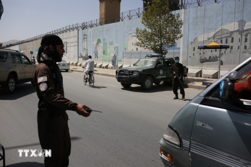 Lực lượng an ninh Afghanistan gác tại hiện trường một vụ tấn công ở Kabul. (Ảnh: THX/TTXVN)