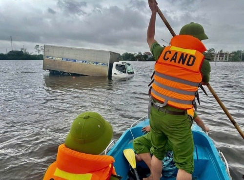 Sau khi cứu người, lực lượng công an đã phối hợp với người dân địa phương di chuyển hàng hóa trên xe nhằm giảm thiểu tối đa thiệt hại về tài sản, đồng thời đưa chiếc xe ra khỏi khu vực ngập lũ nguy hiểm.