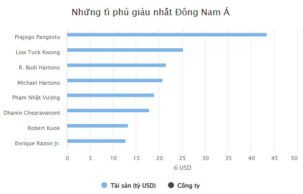 Theo dữ liệu mới nhất của Forbes cập nhật ngày 11-11, tỉ phú Prajogo Pangestu (Indonesia) hiện sở hữu khối tài sản trị giá 43,4 tỉ USD, là người giàu nhất khu vực Đông Nam Á và đứng thứ 38 thế giới.