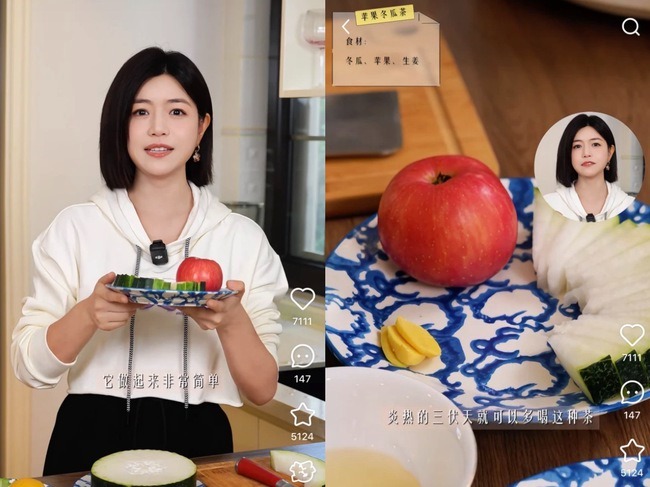 Những ngày lỡ ăn mặn hoặc nhiều dầu mỡ, Trần Nghiên Hy sẽ nấu một nồi nước táo – bí đao để giúp cơ thể xả nước dư. Cách làm khá đơn giản: bí đao để nguyên vỏ cắt lát, thêm một quả táo cắt miếng cùng vài lát gừng, đun khoảng 20 phút là có thể uống.