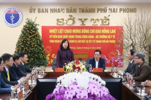 Cùng ngày, Bộ trưởng Bộ Y tế Đào Hồng Lan đã đến thăm, làm việc và chúc Tết tại Sở Y tế TP. Hải Phòng, Đại học Y Dược Hải Phòng.
