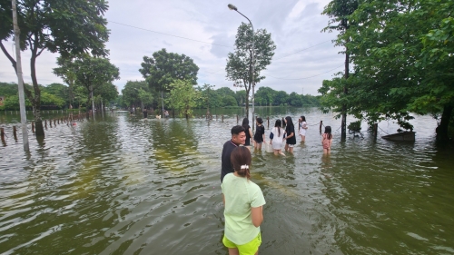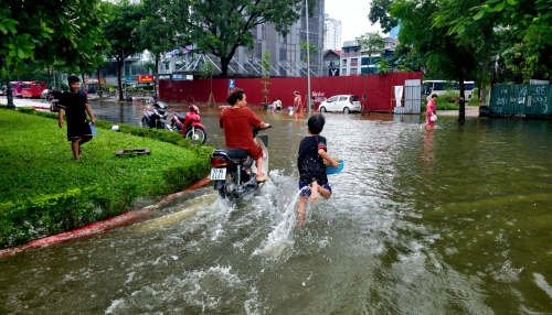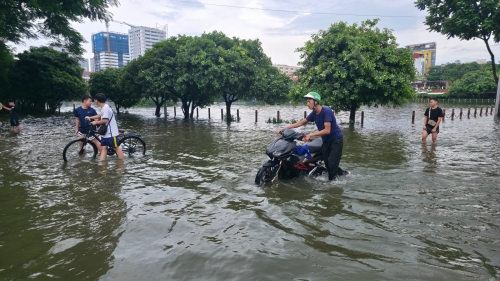 Sau trận mưa xối xả kéo dài nhiều giờ đồng hồ ngày 30/9, đến hôm nay nhiều khu vực ở Hà Nội vẫn ngập sâu, nước ngập mênh mông.