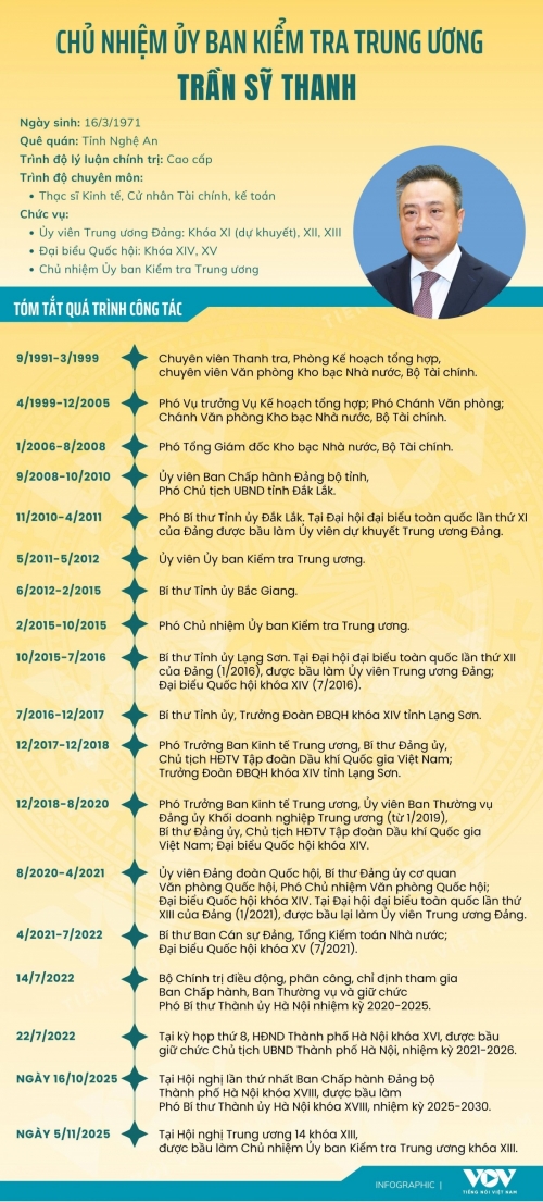 Ngày 5/11, Tại Hội nghị Trung ương 14 khóa XIII, Trung ương bầu ông Trần Sỹ Thanh, Ủy viên Trung ương Đảng, Phó Bí thư Thành uỷ, Chủ tịch UBND thành phố Hà Nội tham gia Ủy ban Kiểm tra Trung ương và giữ chức Chủ nhiệm Ủy ban Kiểm tra Trung ương khoá XIII.