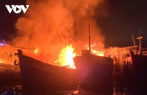Theo thông tin ban đầu, 3 tàu cá của ngư dân xã Bình Sơn bị cháy, gồm: tàu cá số hiệu QNg-95221.TS do ông Lê Hồng Sơn làm chủ, bị cháy khoảng 95%; tàu cá số hiệu QNg-95554. TS của ông Nguyễn Khắc Vĩ, cháy khoảng 95%; tàu cá số hiệu QNg-TS 90735 do bà Nguyễn Thị Hồng Lắm làm chủ, cháy khoảng 20%. Ngoài ra, tàu cá số hiệu QNg-95138.TS của bà Bùi Thị Tường Vy, trú xã Vạn Tường cũng bị cháy trên 70%.