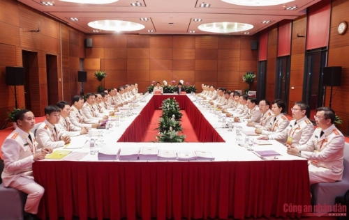 Các đại biểu dự buổi làm việc tại Đoàn đại biểu Đảng bộ Công an Trung ương. |