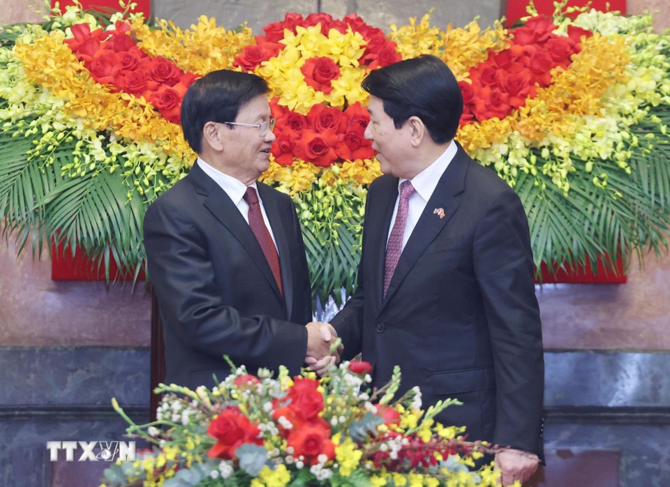 Chủ tịch nước Lương Cường và Tổng Bí thư, Chủ tịch nước Lào Thongloun Sisoulith. Ảnh: TTXVN |