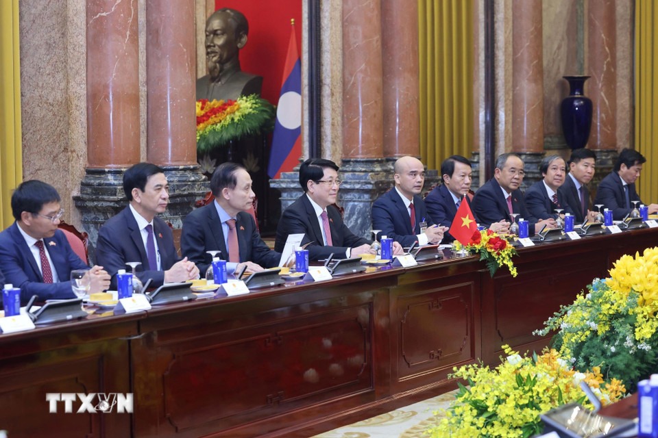 Chủ tịch nước Lương Cường đánh giá cao những kết quả tích cực trong hợp tác Việt Nam - Lào thời gian qua. Trong bối cảnh tình hình khu vực và thế giới có nhiều biến động phức tạp, Chủ tịch nước nhấn mạnh việc hai nước tăng cường đoàn kết, gắn bó, thường xuyên chia sẻ thông tin và phối hợp chặt chẽ lập trường càng trở nên cần thiết và có ý nghĩa hơn bao giờ hết, qua đó hỗ trợ lẫn nhau thực hiện thắng lợi các mục tiêu phát triển của mỗi Đảng, mỗi nước.