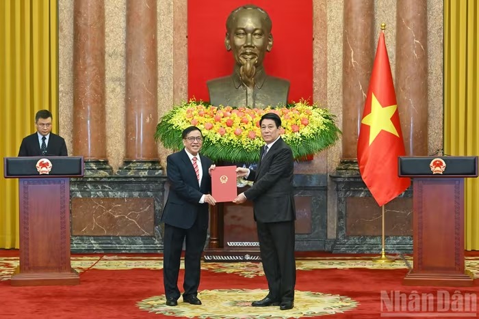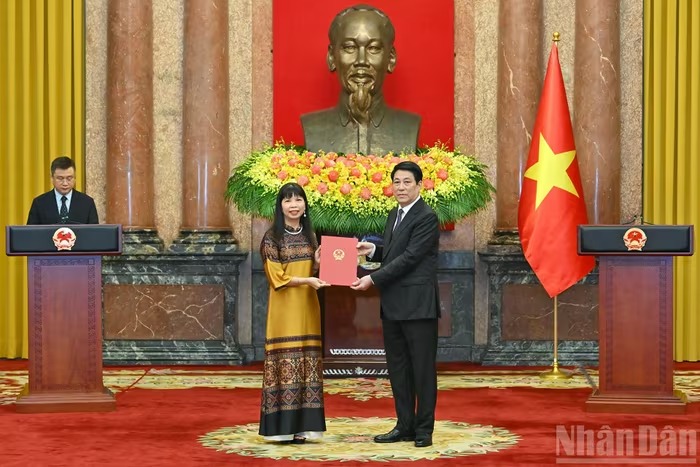 Chủ tịch nước Lương Cường trao Quyết định bổ nhiệm Đại sứ đặc mệnh toàn quyền nước Cộng hòa xã hội Chủ nghĩa Việt Nam tại Cộng hòa Ireland. |