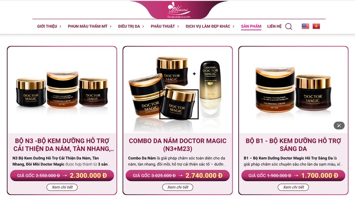 Theo tài liệu lưu trữ vào giữa tuần này, phóng viên truy cập website vẫn thấy mục "Sản phẩm". Khi nhấp vào, hệ thống hiển thị đầy đủ hình ảnh, thông tin mô tả và giá bán của các bộ mỹ phẩm Doctor Magic, vốn được Mailisa quảng bá rầm rộ.