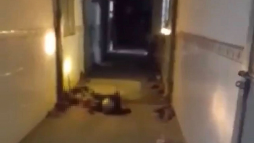 Thi thể nạn nhân ở hành lang dãy trọ |