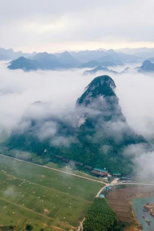 Toàn cảnh làng du lịch Tân Hóa nhìn từ trên cao. Ảnh: Oxalis. |