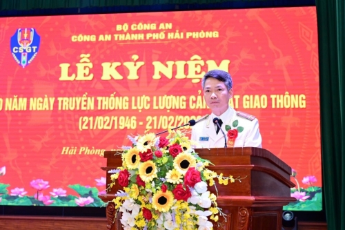 Phát biểu chỉ đạo tại Lễ kỷ niệm, Thiếu tướng Bùi Quang Bình - Bí thư Đảng ủy, Giám đốc Công an TP Hải Phòng trân trọng ghi nhận, biểu dương sự cố gắng, nỗ lực của lực lượng CSGT qua các thời kỳ, những người đã đóng góp, cống hiến vào bảng vàng thành tích, chiến công của lực lượng, góp phần làm nên những thành tích nổi bật của Công an TP trong những năm qua.