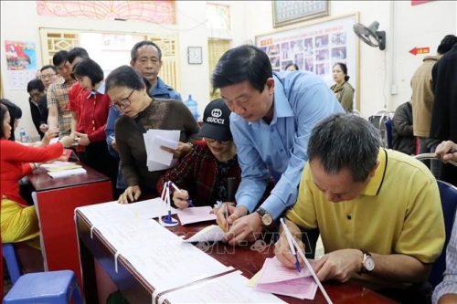 Các cử tri phường Hải Dương bỏ phiếu tại Nhà văn hóa tổ dân phố 37 Ảnh: Mạnh Tú/TTXVN |