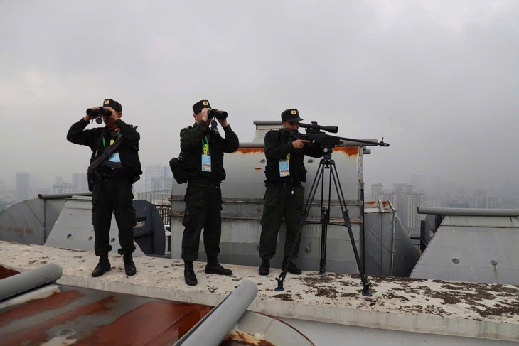 Với yêu cầu bảo vệ ở cấp độ cao nhất, các tổ công tác Cảnh sát đặc nhiệm được triển khai ứng trực 24/24 giờ tại nhiều vị trí then chốt, bảo đảm kiểm soát chặt chẽ không gian khu vực tổ chức Đại hội.
