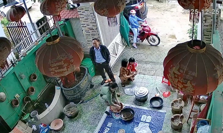 Bí thư Tỉnh ủy Gia Lai Thái Đại Ngọc bất ngờ quay lại thăm hỏi gia đình chị Nguyễn Thị Thúy Hân chiều 25-12 - Ảnh: Camera an ninh