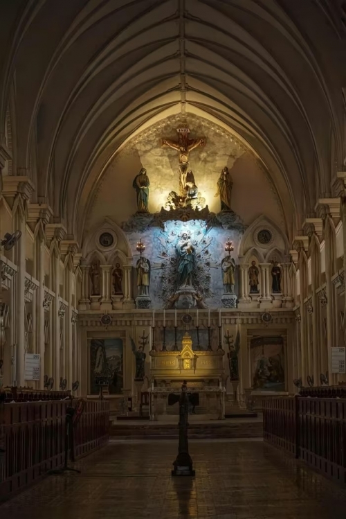 Nằm nép mình giữa núi rừng hùng vĩ của vùng đất cố đô, Đan viện Châu Sơn mang đậm dấu ấn kiến trúc Gothic cổ. Công trình nổi bật với những bức tường bao dày tới 0,6m, hệ cột lớn dày khoảng 1,2m, giúp không gian bên trong luôn mát mẻ vào mùa hè và ấm áp khi đông về. Ảnh Quangdat.pham |