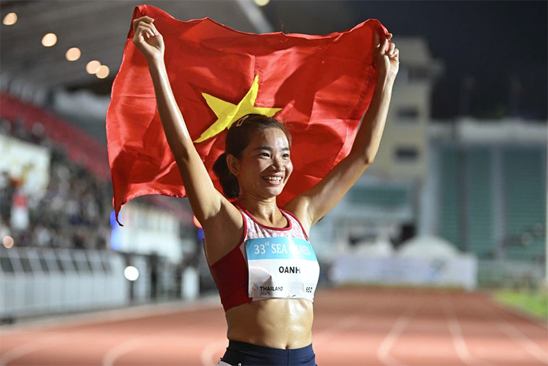 Huy chương vàng SEA Games thứ 13 của Nguyễn Thị Oanh Tại nội dung 5.000m điền kinh nữ, Nguyễn Thị Oanh cùng đồng đội Lê Thị Tuyết nhanh chóng bỏ xa các đối thủ ngay ở những vòng đầu tiên. Chung cuộc, Oanh về nhất với thời gian 16 phút 27 giây 13, qua đó xuất sắc giành tấm Huy chương Vàng. Trong khi đó, Lê Thị Tuyết về nhì với thời gian 16 phút 34 giây 06. Và ở thời điểm về đích, cả hai thậm chí còn hơn đối thủ tới 2 vòng chạy.