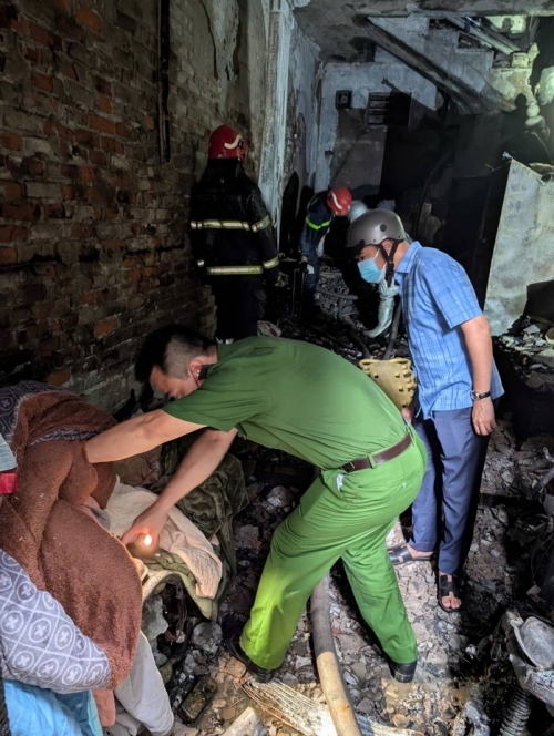 Trong quá trình tìm kiếm, cứu nạn, cứu hộ vụ cháy ở phố Kim Hoa, lực lượng Cảnh sát phát hiện 5 nạn nhân trong một gia đình đã tử vong.