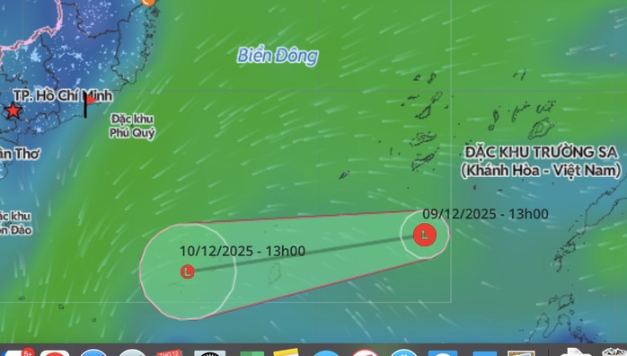 Trung tâm Dự báo khí tượng thủy văn quốc gia thông tin, hồi 1 giờ ngày 10-12, vị trí trung tâm vùng áp thấp ở vào khoảng 8,0-9,0 độ Vĩ Bắc; 111,0-112,0 độ Kinh Đông trên khu vực phía Nam Biển Đông.