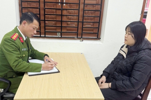 Đối tượng Nguyễn Thị Lãnh tại cơ quan Công an. |