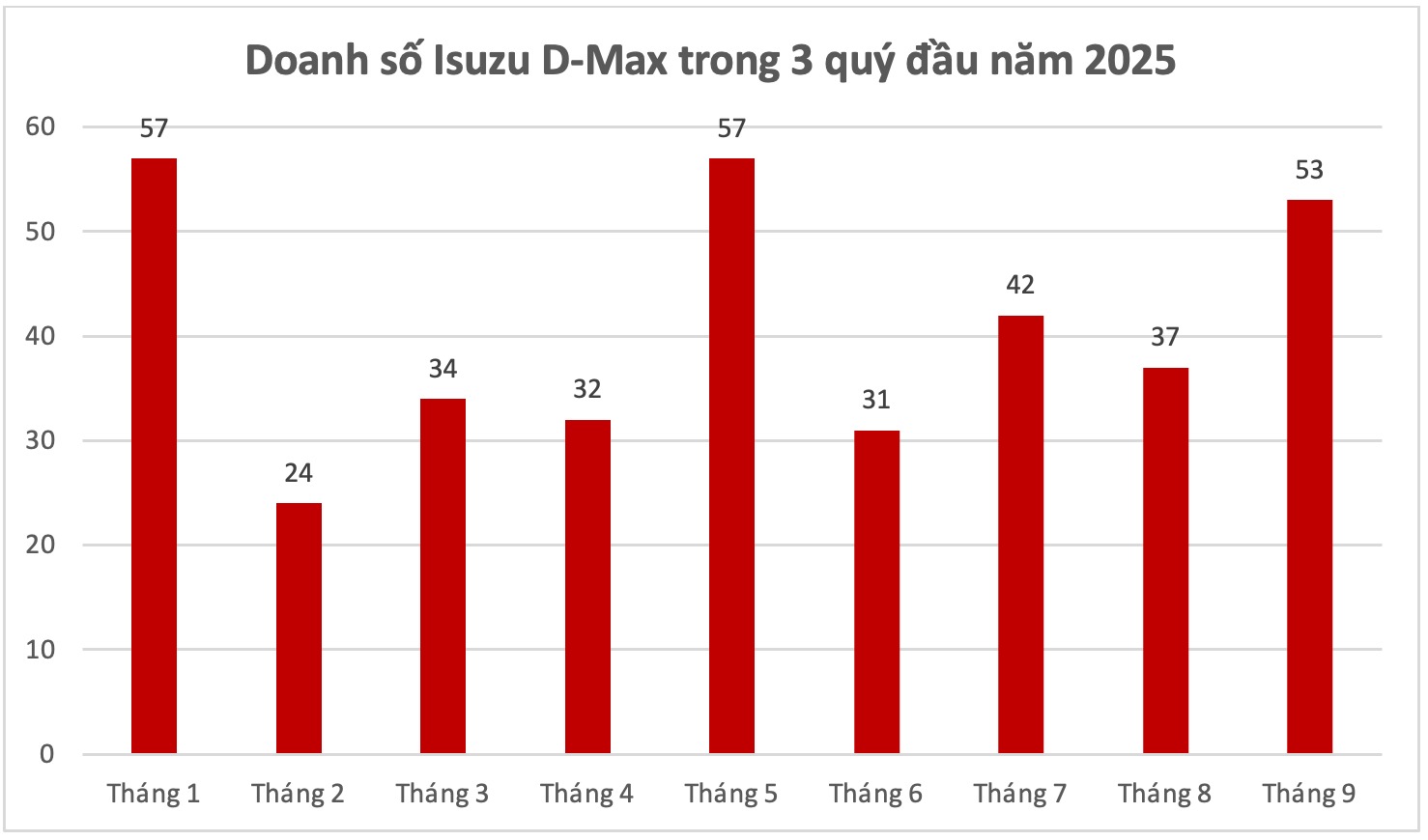 Trong phân khúc bán tải, ngoại trừ Ford Ranger, các mẫu xe khác đều xếp sau khá xa về doanh số. Xếp trên Isuzu D-Max còn là Mitsubishi Triton và Toyota Hilux.