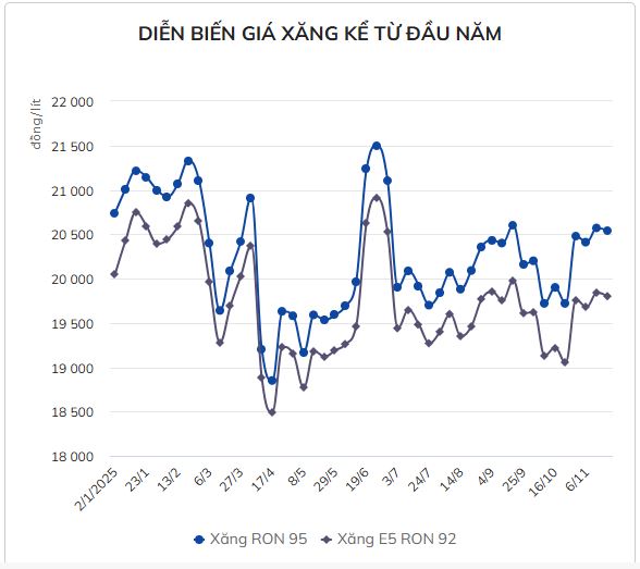 Như vậy, giá xăng trong nước liên tục tăng giảm đan xen trong 2 tháng trở lại đây. Từ đầu năm đến nay, mặt hàng xăng RON 95 đã tăng tổng cộng 26 lần, giảm 22 lần.