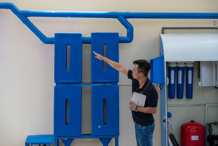 Việc tự động hóa phần nào giúp trường chủ động trong quá trình vận hành, không cần phụ thuộc vào đơn vị cung ứng. Lõi lọc cũng được cung cấp miễn phí trong 3 năm đầu. Về phía nhà cung cấp, hệ thống thông minh giúp kiểm soát lượng nước mưa thu, lọc được.