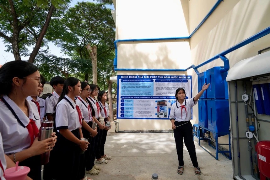 “Hệ thống tận dụng được nguồn nước mưa tự nhiên, ra nước sạch có thể uống được, giúp cho nhà trường tiết kiệm chi phí, các em học sinh không phải đem nước từ nhà đến trường, lại có ý thức bảo vệ môi trường, tiết kiệm nước”, cô Cổ Thị Ngọc Nữ, quyền hiệu trưởng THCS Long Hòa chia sẻ.