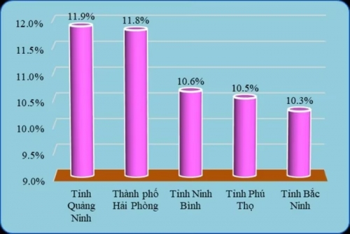 Có 6 địa phương đạt tăng trưởng trên 10%, dẫn đầu là Quảng Ninh và Hải Phòng với mức lần lượt 11,89% và 11,81%. Nhóm này còn gồm Ninh Bình, Phú Thọ, Bắc Ninh và Quảng Ngãi.