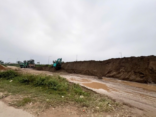 Đơn vị thi công tập kết vật liệu phục vụ dự án tái định cư. Ảnh ND. |