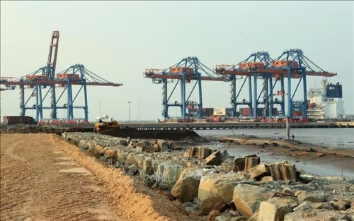 Thi công tuyến đê biển Nam Đình Vũ (Hải Phòng). Ảnh tư liệu: Quốc Khánh/TTXVN |