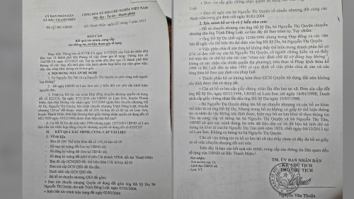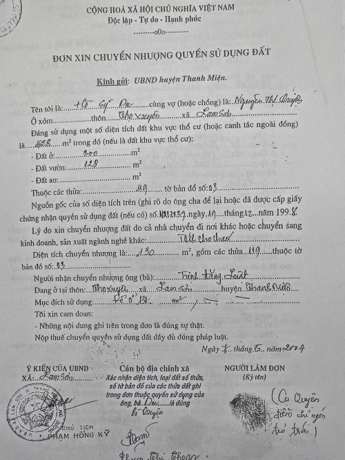 Ở một diễn biến khác, tại báo cáo kết quả xác minh, cung cấp các thông tin, tài liệu tham gia tố tụng số 43 ngày 28/7/2025 của UBND xã Bắc Thanh Miện, thành phố Hải Phòng do ông Nguyễn Văn Thuận phó chủ tịch UBND xã ký cho biết: Hồ sơ chuyển nhượng của ông Hồ Sỹ Du, bà Nguyễn Thị Quyện chuyển nhượng cho ông Trịnh Đăng Luật cơ bản đầy đủ theo trình tự, tuy nhiên; Ông Hồ Sỹ Du chết ngày 12/6/1996 nhưng trong hợp đồng các văn bản vẫn thể hiện tên đại diện của ông Du bà Quyện. Việc phân chia di sản thừa kế không thấy thể hiện trong thành phần hồ sơ (chỉ có đơn viết tay của bà Nguyễn Thị Quyện, có người chứng kiến và có thấy thể hiện tên và chữ ký của các con “chưa xác định chữ ký có đúng hay không” không có xác nhận của chính quyền địa phương), trên thực tế pháp lệnh thừa kế 1990 và Bộ Luật dân sự năm 1995 có quy định về việc phân chia di sản và các hàng thừa kế theo quy định của pháp luật. Thành phần hồ sơ không kèm theo giấy chứng nhận quyền sử dụng đất nên không xác định được chủ sử dụng đất. Căn cứ hồ sơ lưu cấp giấy chứng nhận lần đầu lưu tại xã; Đơn xin cấp đất của ông Hồ Sỹ Du ngày 3/11/1996, UBND xã Lam Sơn xét ngày 16/01/1998, danh sách cấp giấy chứng nhận lần đầu ông Hồ Sỹ Du ngày 15/7/1998.