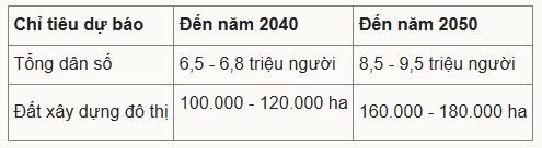 Dự báo quy mô dân số và đất đô thị |