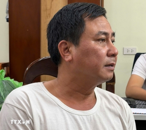 Lái xe Nguyễn Quang Thinh tại cơ quan điều tra. (Ảnh: TTXVN phát) |
