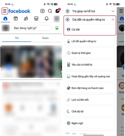 1. Mở ứng dụng Facebook và đăng nhập. Nhấn vào biểu tượng Menu (ba gạch ngang) ở góc dưới bên phải, sau đó chọn Cài đặt và Quyền riêng tư.