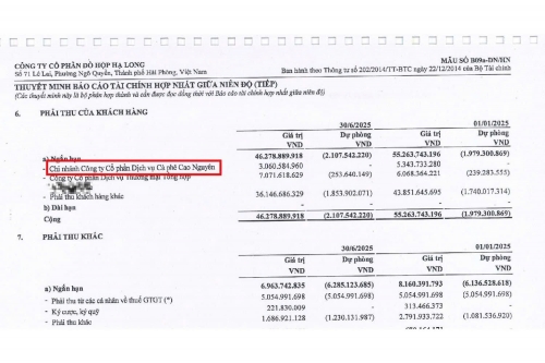 Ngay sau khi thông tin vụ việc được công bố, giới đầu tư và người tiêu dùng đã nhanh chóng tìm lại Báo cáo tài chính hợp nhất bán niên năm 2025 của Công ty Cổ phần Đồ hộp Hạ Long (được công bố ngày 30/8/2025). Dữ liệu tại trang 20, mục Thuyết minh báo cáo tài chính hợp nhất giữa niên độ số 6 về Phải thu ngắn hạn khách hàng, ghi nhận Công ty Cổ phần Dịch vụ Cà phê Cao Nguyên (đơn vị chủ quản thương hiệu Highlands Coffee) là một trong những khách hàng có giao dịch thường xuyên và công nợ lớn với Đồ hộp Hạ Long.