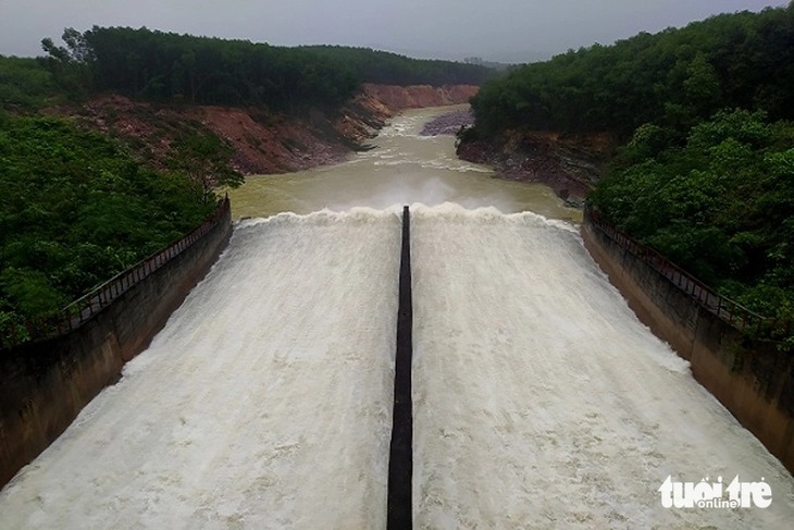 | Hồ Kẻ Gỗ trong một lần xả tràn - Ảnh: LÊ MINH |