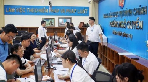 Đông đảo người dân đến thực hiện thủ thục hành chính tại phường Ngô Quyền. |