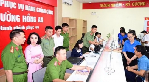 Công an phường Hồng An thực hiện giải quyết thủ tục hành chính trong lĩnh vực đảm bảo ANTT. |