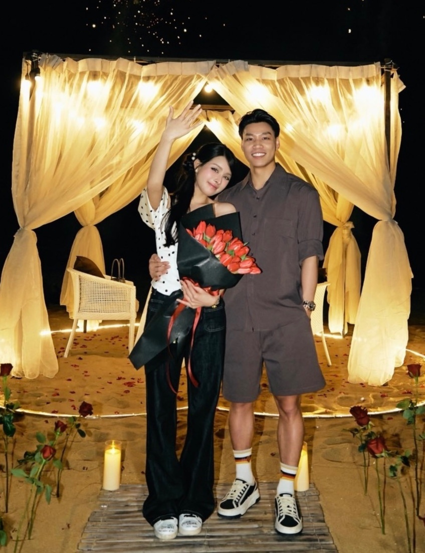 Tối 14/4, Vũ Văn Thanh gây chú ý khi đăng ảnh cầu hôn bạn gái Trần Bích Hạnh. Nam cầu thủ chọn đúng ngày sinh nhật của mình để công khai, càng thu hút sự chú ý của người hâm mộ. Văn Thanh viết: "Tuổi mới với vai trò mới, trách nhiệm mới. Em chính là món quà quý giá nhất từ trước tới nay. Cảm ơn em vì đã cho anh cơ hội được ở bên, chăm sóc và đồng hành cùng em suốt phần đời còn lại". Đúng một năm trước, cặp đôi gây bất ngờ khi công khai hẹn hò trên trang cá nhân. Ảnh: Vũ Văn Thanh/Facebook. |