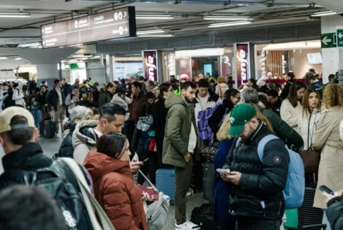 Hành khách chờ đợi trong sảnh ga tàu Madrid vào ngày 18/1/2026, sau khi có thông báo tạm ngừng hoạt động do một tai nạn trong đó hai đoàn tàu trật bánh ở Cordoba. Ảnh: AP |