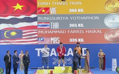 Sau nhiều ngày chờ đợi, tuyển cử tạ Việt Nam cuối cùng cũng có tấm huy chương vàng đầu tiên tại SEA Games 2025. Đó là nhờ màn trình diễn của lực sĩ Trần Đình Thắng ở hạng cân 94+ kg. Đô cử sinh năm 1999 vượt qua đối thủ chủ nhà Thái Lan với tổng thành tích 366 kg, qua đó bước lên bục cao nhất ở nội dung vốn được đánh giá cực kỳ khốc liệt.