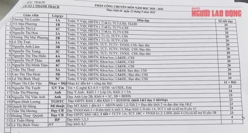 Danh sách phân công chuyên môn năm học của Trường thì việc giảng dạy của Hiệu trưởng và Phó Hiệu trưởng không có lịch cố định, không xác định rõ môn học, tiết học, không xây dựng kế hoạch dạy học và bài soạn theo quy định... Ảnh Hoàng Phúc |